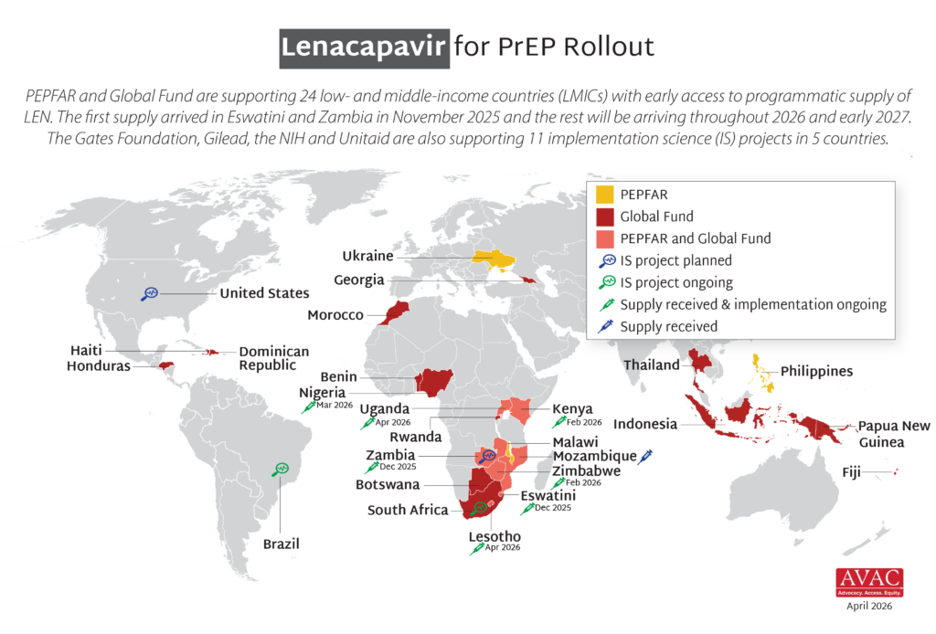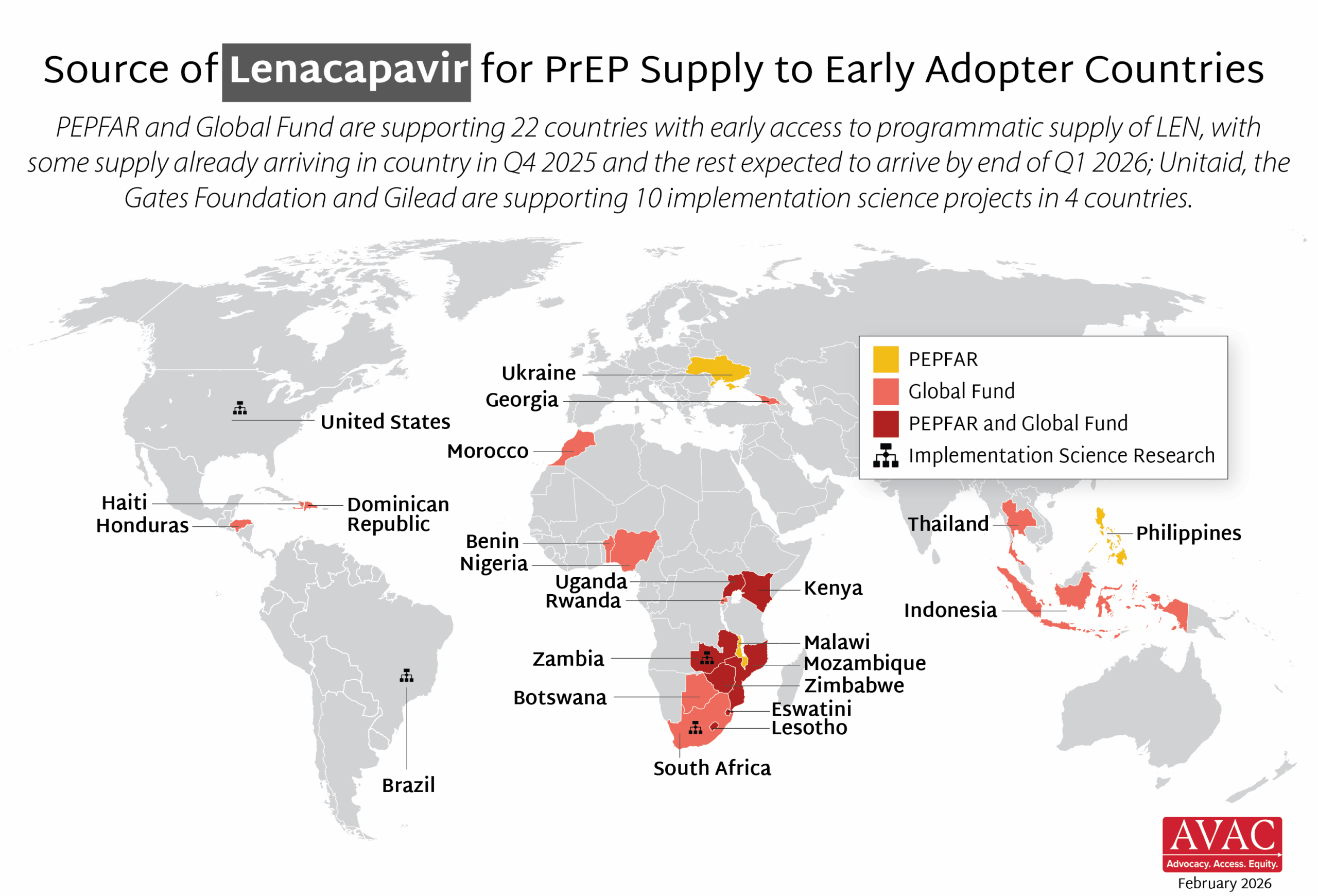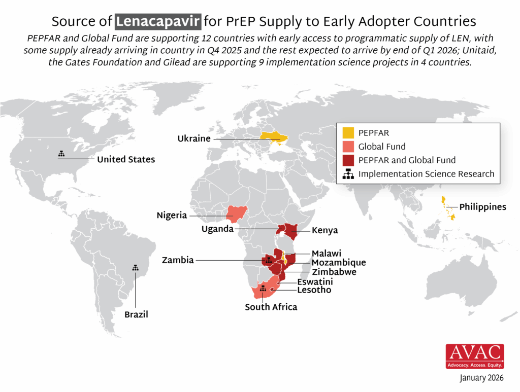 The Global Fund, with support from CIFF, and PEPFAR have jointly committed to reaching up to two million people with injectable lenacapavir for PrEP over three years. Supply of LEN began arriving in countries in late 2025 with service delivery planned to start in early 2026.