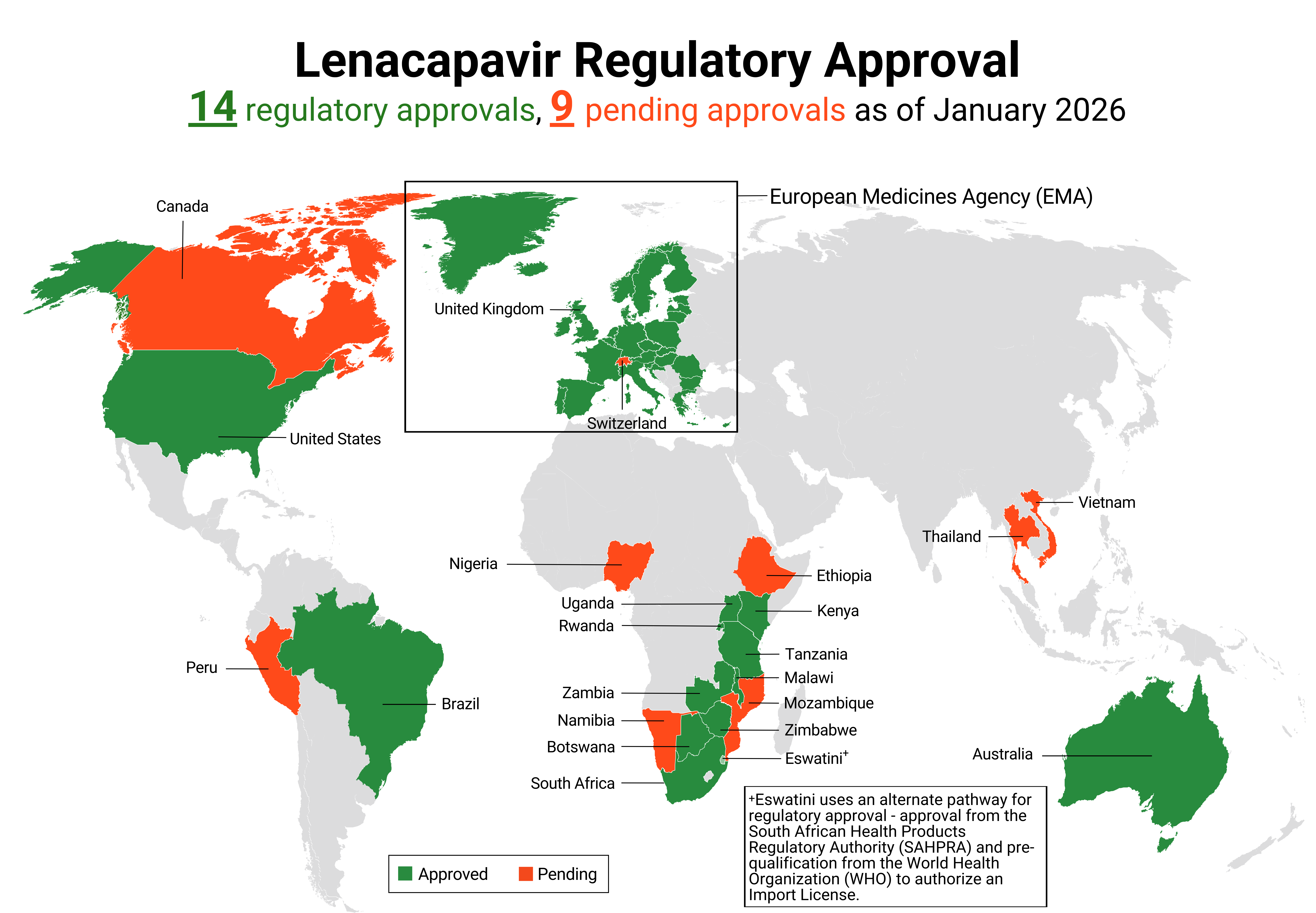 Regulatory approvals and those pending for cabotegravir as of January 2026.