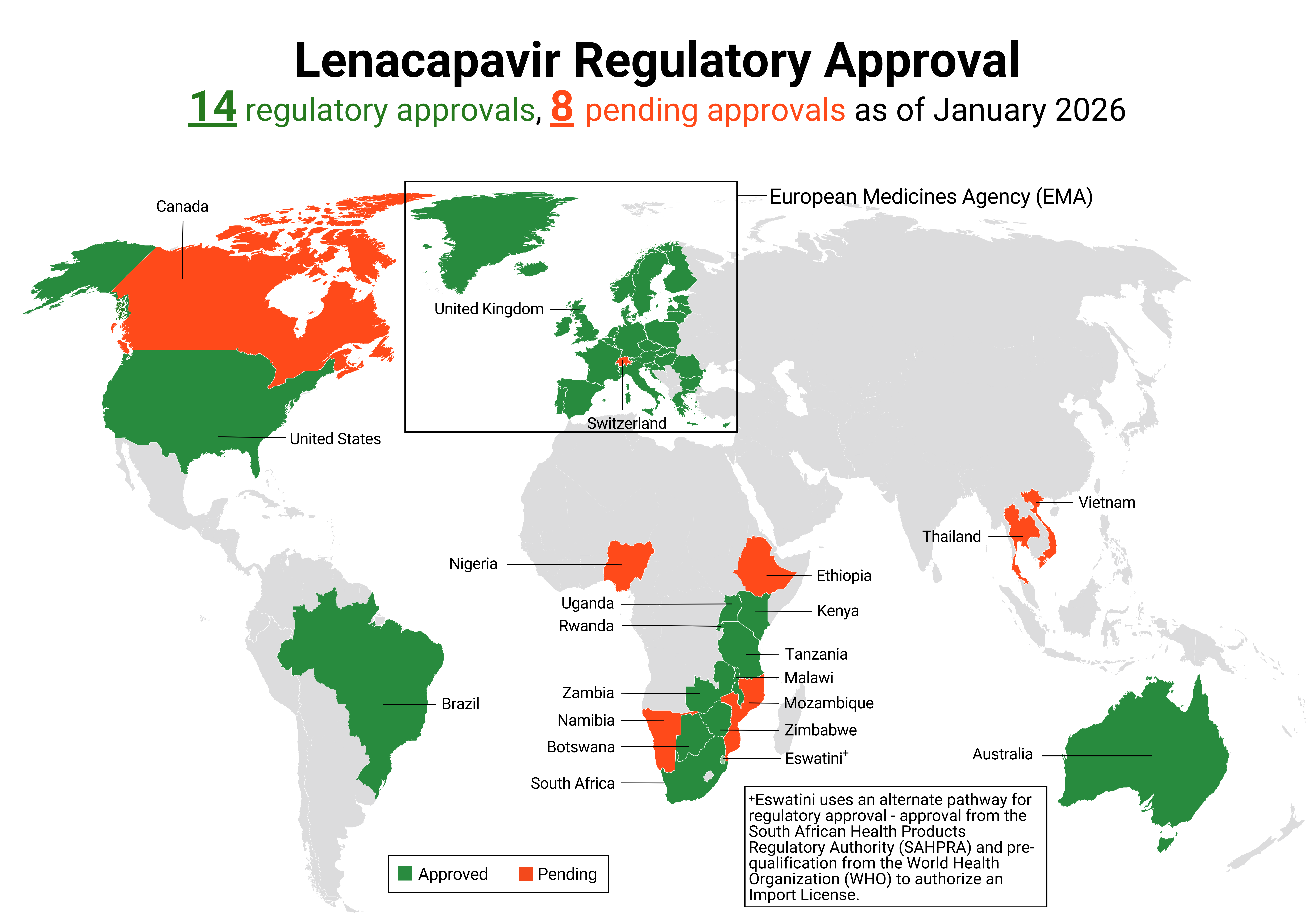 Regulatory approvals and those pending for cabotegravir as of January 2026.