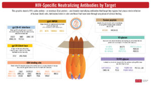 A number of broadly neutralizing antibodies that target various regions of HIV’s Env protein are being developed for HIV prevention.