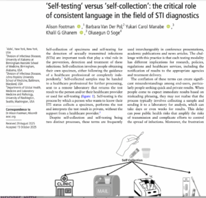 Sexually Transmitted Infections: ‘Self-testing’ versus ‘self-collection’: the critical role of consistent language in the field of STI diagnostics